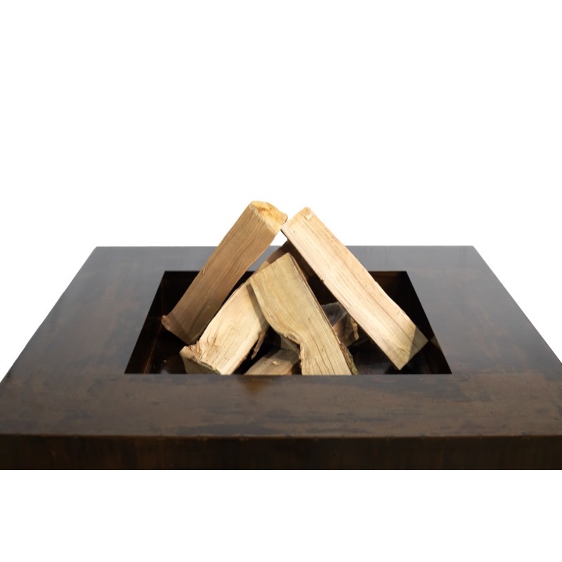 La fabrication de son foyer carré de 700 mm de côté se compose d'alliages « résistants aux intempéries » développent un revêtement protecteur à mesure qu'ils vieillissent, de sorte que le matériau du foyer n'a jamais besoin d'être peint.